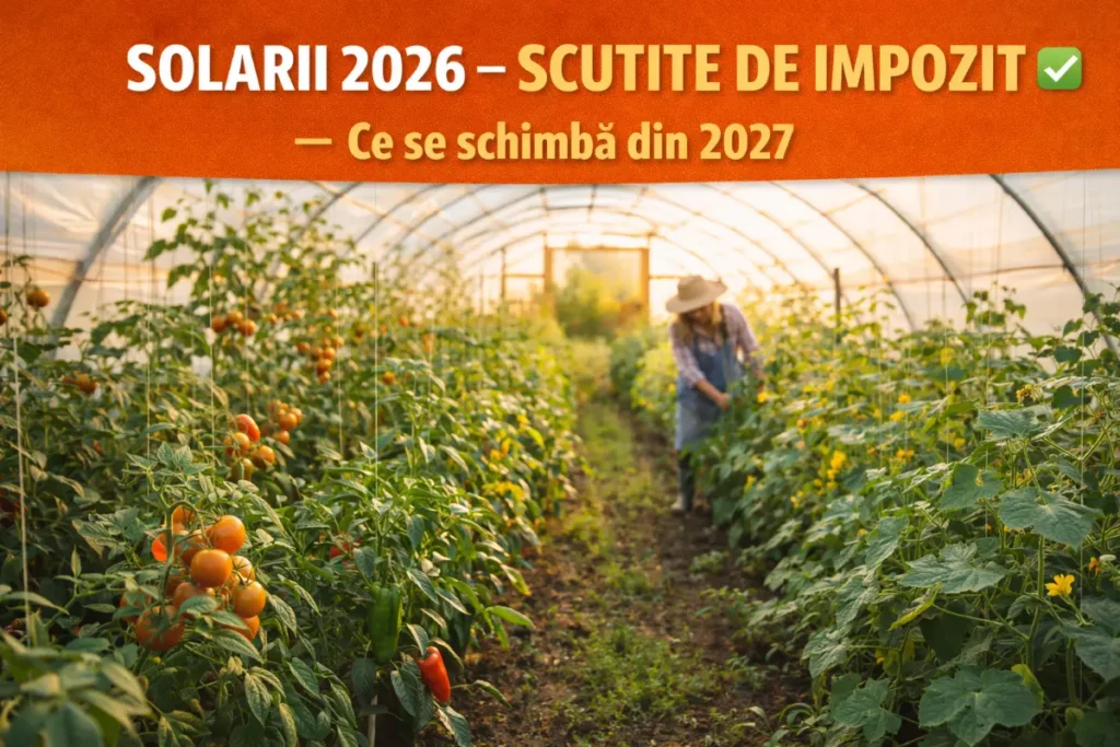 Nu, nici în 2026. Scutirea se aplică tuturor – atât solariilor simple, cât și serelor autorizate folosite agricol. Din 2027, dacă proiectul trece de Parlament, s-ar putea aplica un impozit de 0,5% din valoarea impozabilă a serei tale industriale.